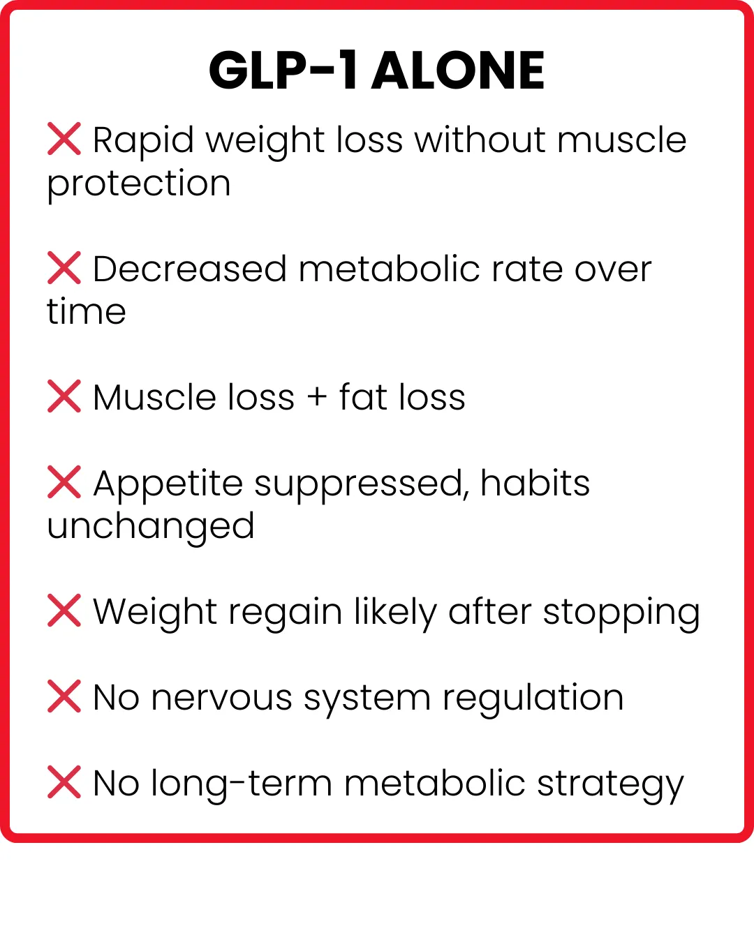 Rebound happens when GLP-1s are used without gut optimization, hormonal balance, mitochondrial support, muscle protection, and strategic tapering. Those are exactly what our program addresses — in the right order, with clinical oversight, every step of the way.